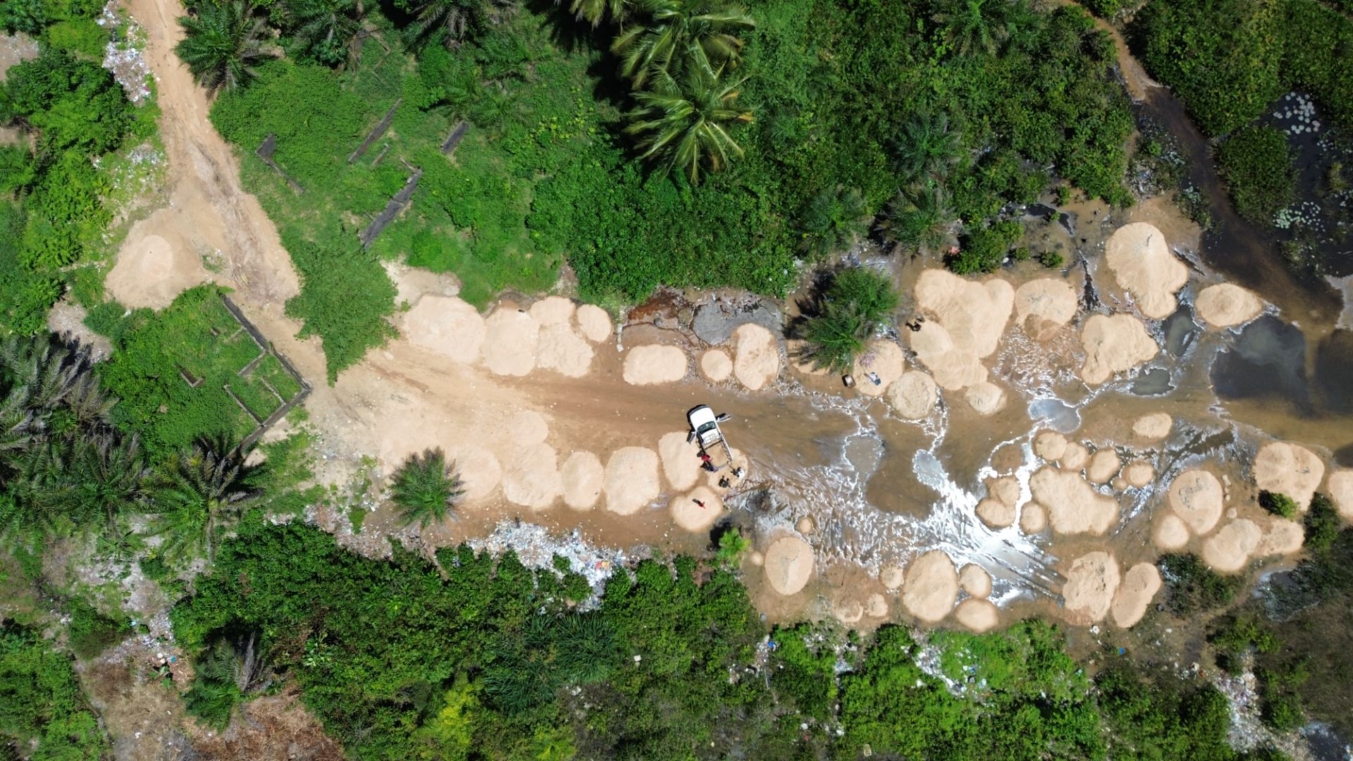Drone pictures confirmed Dolo’s comments. Other illegal mining sites were scattered between the lagoon and a graveyard. A bricks repository, operated by another group of miners, was also captured.
