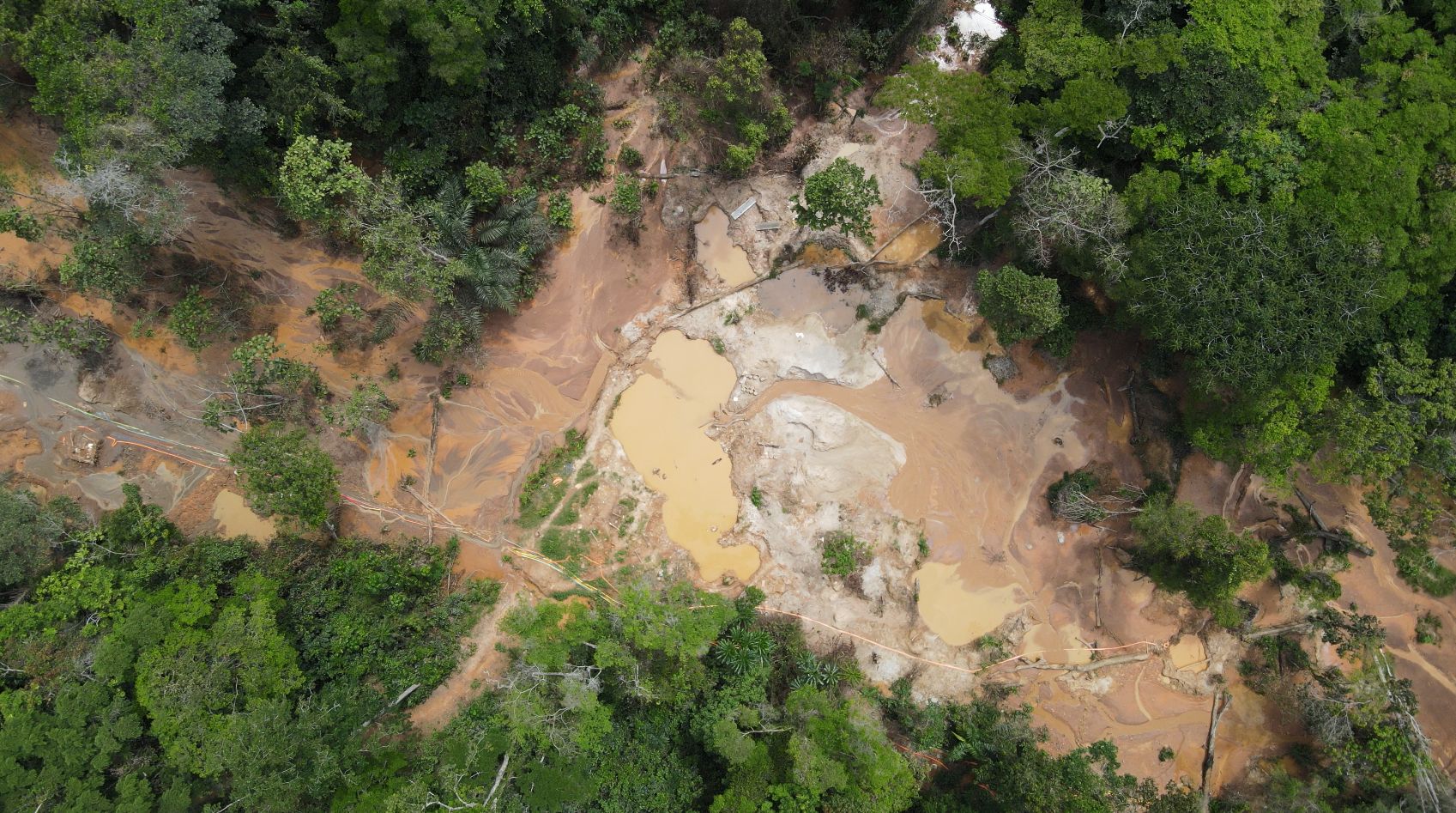 Top: A drone shot of Golden Trip Group Limited’s abandoned mine in the Kpeteyea town of Salayea District, Lofa County. The DayLight/Samuel Jabba