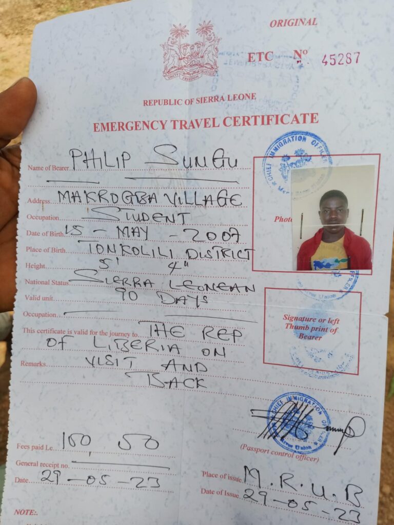 By May 30, the six men headed to the Liberian border at Bo Waterside. There, the company’s representative arranged for emergency travel certificates for the men, according to the documents seen by The DayLight.