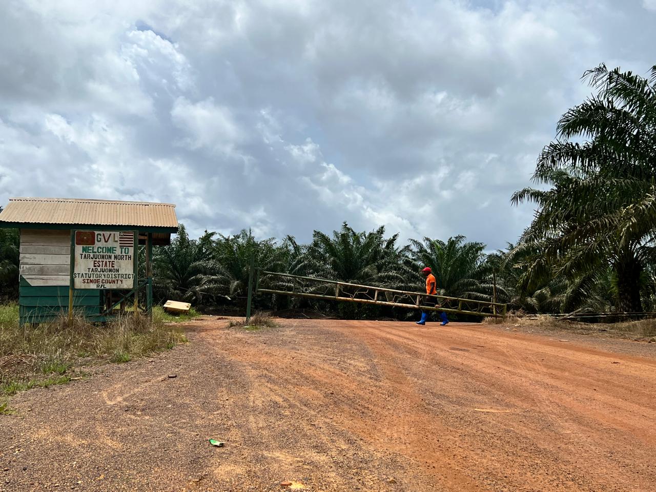 Top: A guard at a Golden Veroleum Liberia gate in Lower Kulu Clan in the Tarjuwon District, Sinoe County. The DayLight/Matenneh Keita