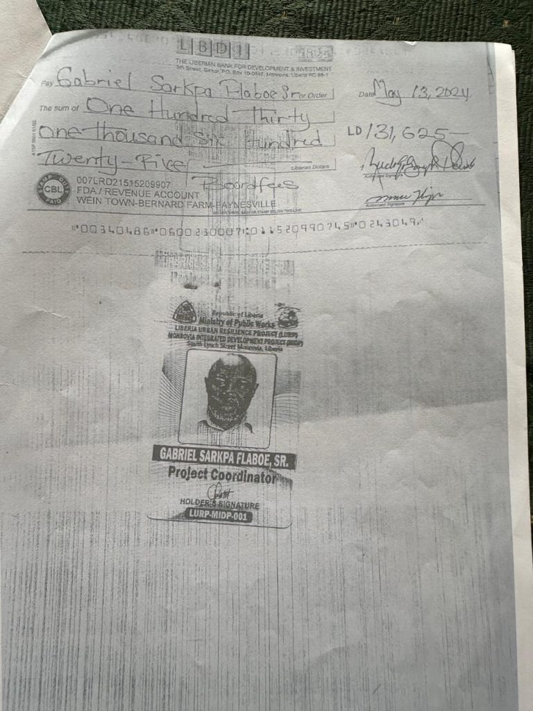 In March, President Joseph Boakai appointed Isaac Grigsby, an 80-year-old resident of New Jersey, on the FDA board. Since then, Grigsby has been receiving board-sitting fees through Gabriel Flaboe, a project coordinator at the Ministry of Public Works.