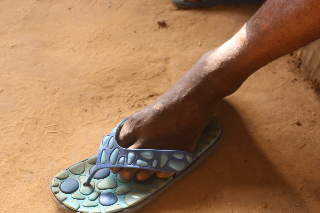 Anthony Jackson’s injury was not as severe as David’s and Kromah’s but was bad enough to scar his left foot. A welder with Bao Chico, Jackson sustained the injury after a welding fume melted an improper footgear he wore, suffering a burn to his left foot.
