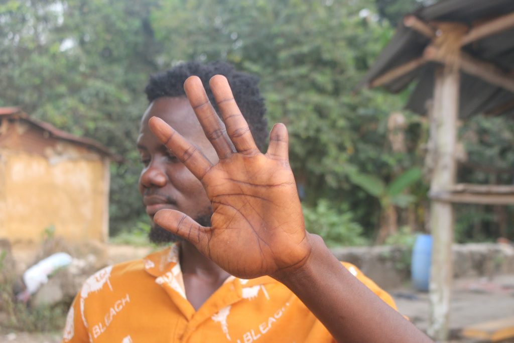 Momo Kromah also lost the little finger on his left hand in a machine accident at Bao Chico. The DayLight/James Harding Giahyue