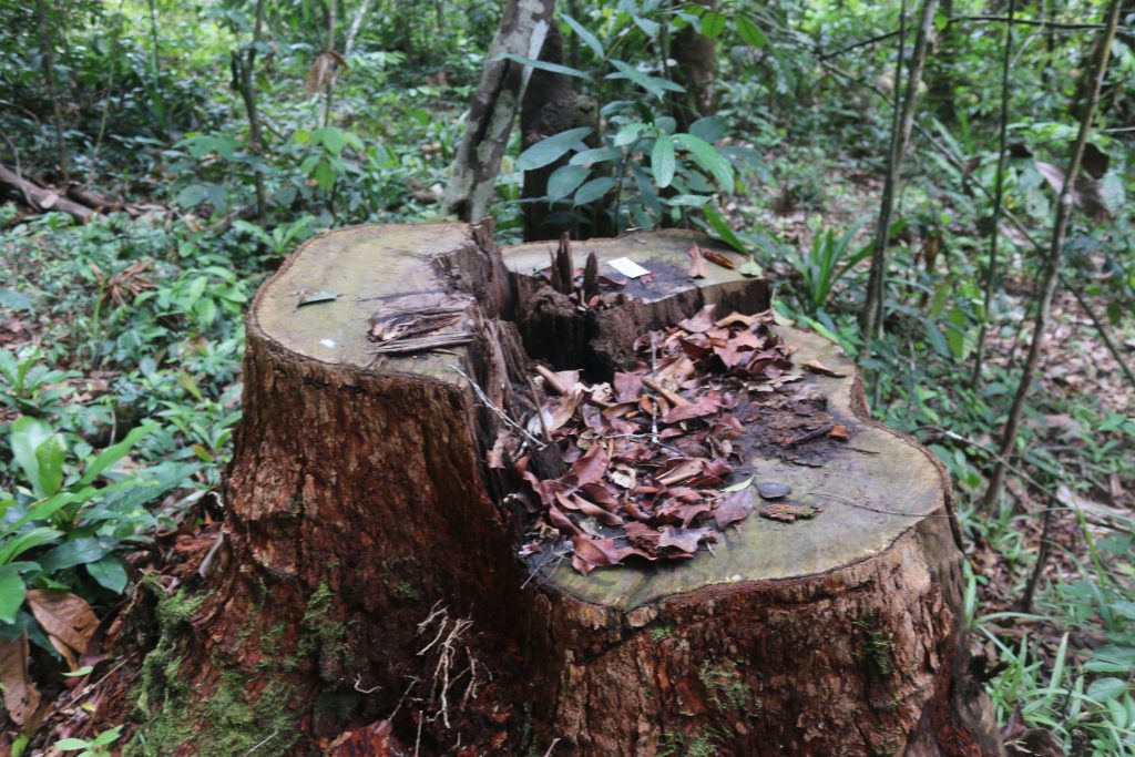 A stump of one of the logs LiberTrace red-flagged for being unauthorizedly felled, undersized and other things. The DayLight/Emmanuel Sherman
