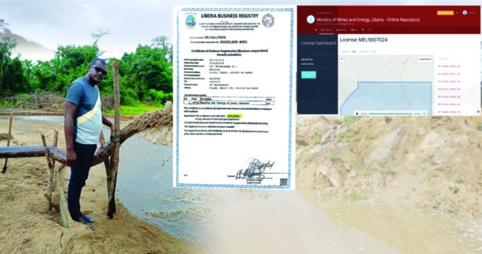 A fake business registration certificate RAC Incorporated, owned by Randy Scott, a notorious illegal miner, presented and obtained a gold-exploration license in Lofa County, covering 210.76 square kilometers.Liberia Business Registry records show that RAC’s valid business registration certificate expired on July 26, 2024, and has not been renewed