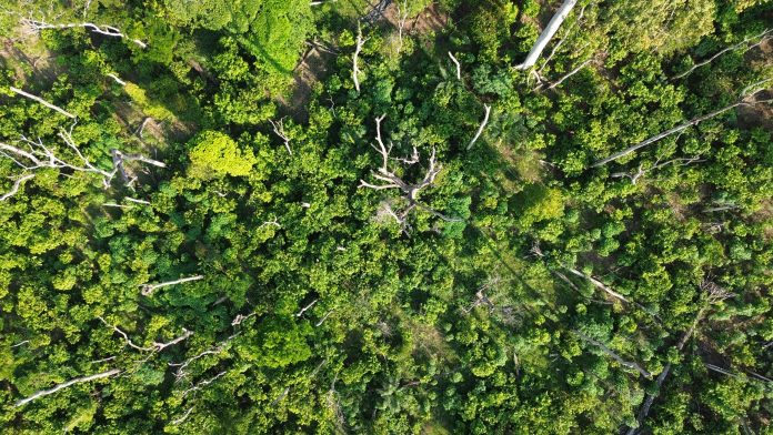 Top: Picture of thriving cocoa beneath tree skeletons located in B’hai Jozon, Grand Gedeh County. DayLight/Samuel T. Jabba